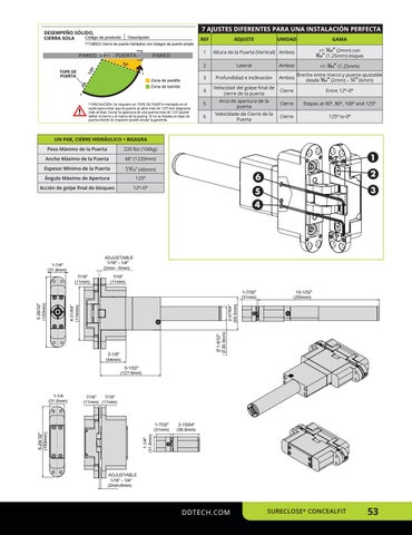 Brecha entre marco y puerta ajustable desde 5⁄64” (2mm) – 1⁄4” (6mm)
