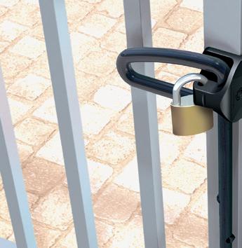 El cerrojo del portón no puede abrirse empujando, tirando o sacudiendo el portón. El pomo para abrir el cerrojo funciona de manera independiente del mecanismo del pasador (“pérdida de movimiento”). El cerrojo se trabará en todo momento.