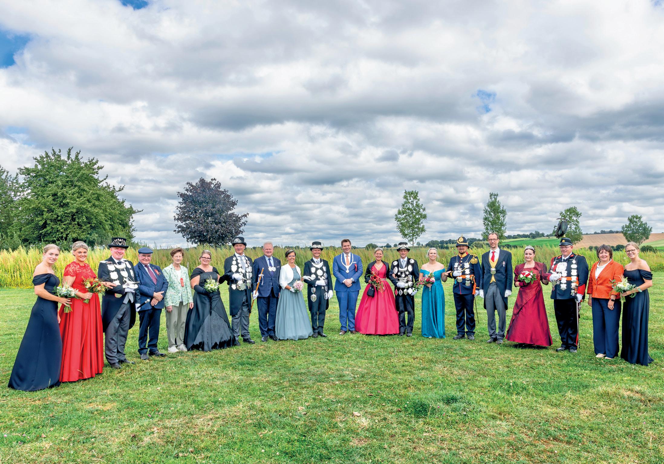 Alle koningsparen en beschermheren en -vrouwen van de schutterijen in de gemeente Eijsden-Margraten stonden samen op de foto.