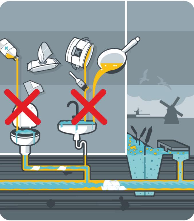 Gebruik het riool alleen waarvoor het bedoeld is. Er belanden veel andere dingen en stoffen in het riool die daar niet thuishoren. Dit verstoort het inzamel- en zuiveringsproces. Ook kan het riool hierdoor verstopt raken. Dit brengt de nodige extra (onderhouds-) kosten met zich mee.