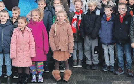 de Grosthuizerschool. Dat deed zij samen met de opvallende blauwe mascotte Druppie. De boodschap