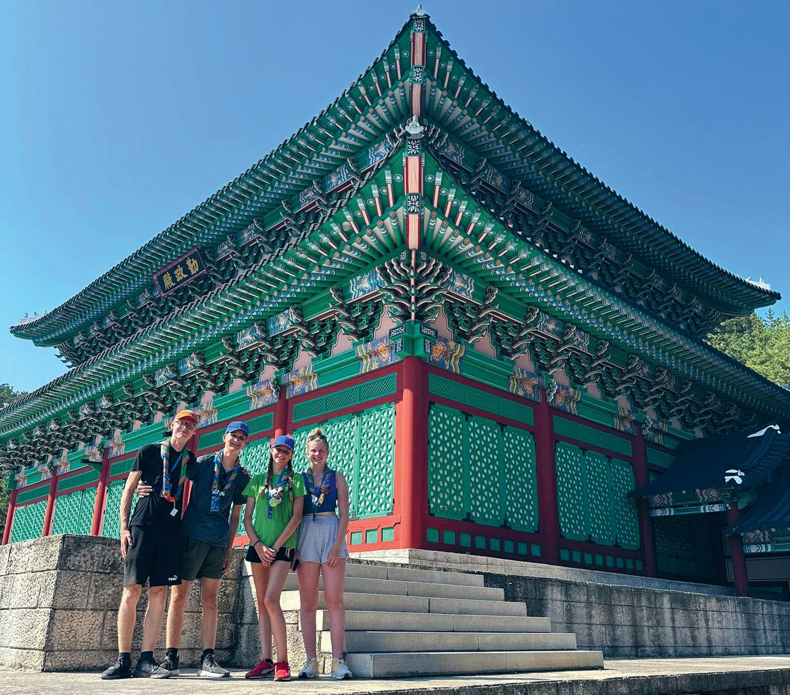 in Korea, begon de vaartocht naar de Grote Kerk in het centrum. Om 16:30 uur de bloemlegging bij het beeld van Jan Janszn. Weltevree.