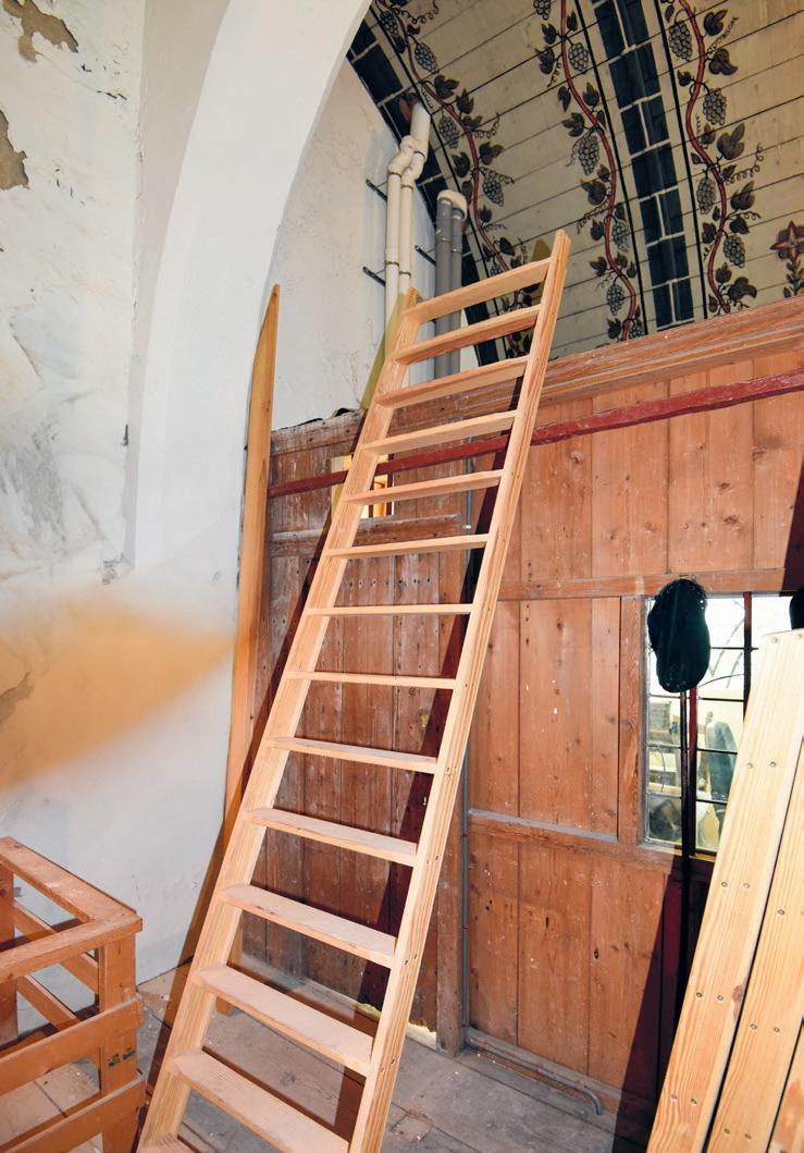 ging van de trap is afgerond tot het plafond boven de klokkenstoel. Tot deze passage zijn het 100 treden, waarvan de onderste 24 nog de oude trappen zijn. Het is nog niet duidelijk welke plannen de gemeente heeft met het resterende gedeelte, de drie ladders met samen nog 37 treden naar de torenspits. Het herstel van de klokkenstoel is geen belemmering voor wanneer de toren beklommen mag worden. Dat is hooguit