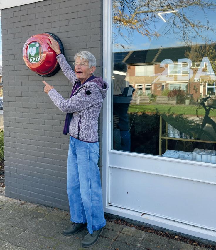 Ursem- “Sinds kort hangt er in de Reigerlaan bij de kapsalon een AED. Deze is geschonken door familie, vrienden, ex-collega's en sportmaten van Pierre Groenland. Pierre is op 22 augustus 2023 plotseling overleden. Tine was heel verrast door het snelle optreden van de Burgerhulpverleners en vond dat zij hiervoor iets moest doen. Deze vrijwilligers staan 24 uur per dag klaar en gaan met verhoogd adrenalinegehalte weer naar huis om de volgende dag weer op het werk te verschijnen. Het afscheid van Pierre was anders. Bij leven heeft Pierre de wens te kennen gegeven zijn lichaam na de dood ter beschikking te stellen aan de medische wetenschap.