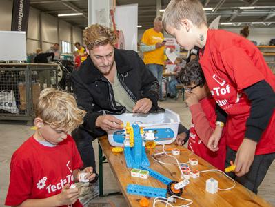 Ook de 6e editie van de Techniek Driedaagse kan de boeken in als een groot succes. Te gast bij Van Vliet Containers in Aalsmeer volgden meer dan 4.000 leerlingen technische workshops onder leiding van lokale technici en vele vrijwilligers. Alle technische branches waren vertegenwoordigd: van Bouw tot Robotica en van Installatietechniek tot ICT & Nieuwe Media. Twee branches waren nieuw ten opzichte van vorig jaar: Zorgtechnologie en Agri-Sierteelt. Doel van het evenement is zoveel mogelijk leerlingen en ouders laten zien, beleven én ervaren hoe leuk en veelzijdig de technische sector is. Overal waar je kijkt, zijn leerlingen bezig; ze nemen een kijkje in een grote vrachtwagen, verwisselen een band van een rolstoel, programmeren een robot en ontdekken de werking van zonne-energie. Op de Techniek Driedaagse kan het allemaal. “Dit is echt vet!’’, reageert Melissa als ze net van graafmachine komt. “Het lijkt helemaal niet zo lastig, maar dat is het wel.’’ Meer tijd om te praten heeft ze niet. Ze is er alweer vandoor. “Nu ga ik een muurtje metselen….’’