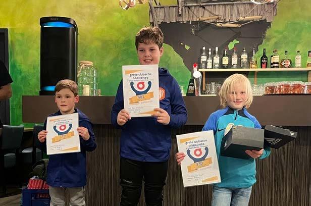 ▲ De Argon-topverkopers: 1. Xavi Erkelens (midden), 2. Mayson Stam (rechts) en 3. Max Wakker ▲ Het best verkopende team: JO11-1JM verkocht maar liefst 932 loten
