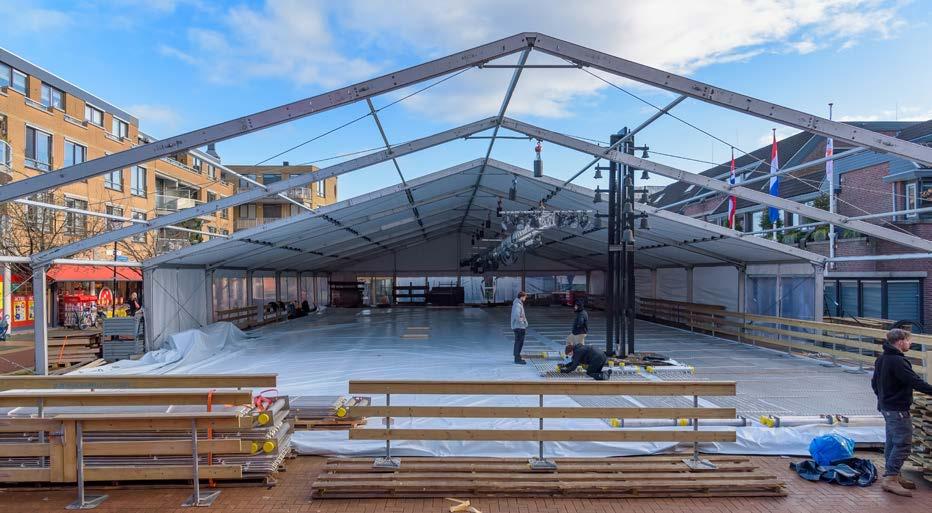 Vanaf aanstaande zaterdag 10 december tot en met 8 januari is het volop ijspret op het Raadhuisplein in Mijdrecht. Dankzij de gemeente, winkeliersvereniging Mijdrecht Dorp en een groot aantal sponsors, is de afgelopen week hard gewerkt aan de opbouw van een prachtige ijsbaan (zie foto van woensdagmiddag). Schaatsliefhebbers kunnen zich naar hartenlust vermaken op de ijsvloer van 16 x 35 meter. De baan is deels overdekt met een tent van 20 x 40 meter met een apart horecadeel, waarvan de opbrengsten geheel naar de ijsbaan gaan. Er vinden veel activiteiten plaats op het ijs de komende weken. Vanaf maandag is er twee weken lang schoolschaatsen voor kinderen van basisscholen, er is G-schaatsen, discoschaatsen op vrijdag, curlingwedstrijden en uiteraard ook vrij schaatsen. Wie niet kan of wil schaatsen is natuurlijk welkom om een kijkje te nemen. Zie pag. 19 van deze krant en kijk op www.ijsbaanmijdrecht.nl voor de actuele openingstijden en het bestellen van kaartjes. foto's arthur van der kooij