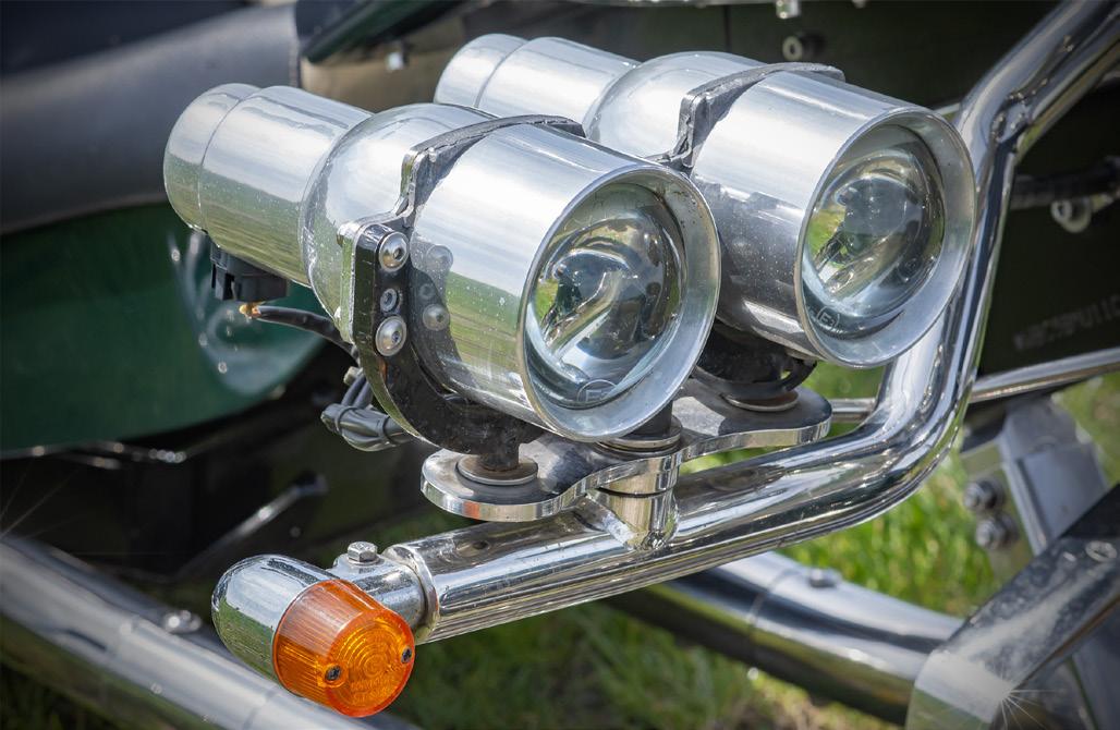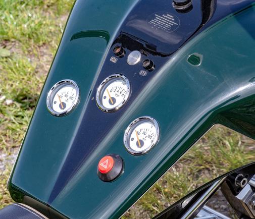 pen, 6,5 inch koplampen op voorvork, diverse meters in tank, 260mm geventileerde “Race” remschijven achter en een alarm met afstandsbediening.