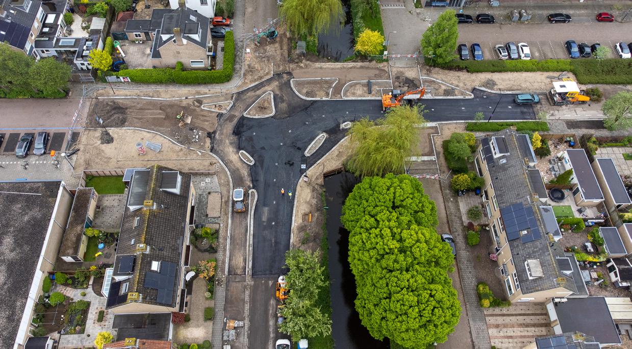 De werkzaamheden aan het kruispunt bij de Lidl (Prinses Margrietlaan/Ambachtsherensingel) lopen twee weken vertraging op, doordat er meer werkzaamheden aan de grond moesten worden verricht dan waarmee rekening was gehouden. Op bovenstaande foto zijn de contouren van de nieuwe situatie al zichtbaar. De nieuwe planning is dat het werk 26 mei is afgerond, zodat het kruispunt dan weer kan worden opengesteld voor verkeer. De Dokter van den Berglaan wordt conform planning op 11 mei opengesteld voor verkeer tussen Dukaton en Rozenobel/Leicester (kruispunt bij Albert Heijn en Tuintje van Mijdrecht). Door de vertraging aan de fietsrotonde bij de Lidl, kan het verkeer dus nog niet over de kruising Rozenobel/Leicester over de Kerkvaartbrug richting de Ambachtsherensingel rijden. De werkzaamheden aan de Van der Haarlaan zijn naar verwachting 14 juni afgerond. De tekst op de gele informatieborden die nog de einddatum 11 mei tonen, worden z.s.m. aangepast. foto luchtopname nl