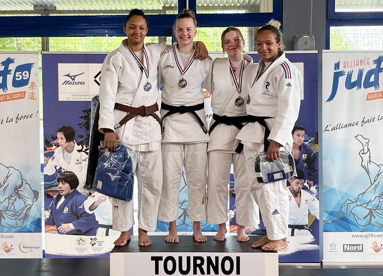 tegen sterke Franse dames die luid werden aangemoedigd door het thuispubliek. De Nederlanders in de zaal lieten zich ook goed horen en uiteindelijk kreeg Xanne het Franse publiek stil door beide dames met uitstekend aanvallend judo te verslaan. Een toernooi waar Xanne geen straf of punt tegen kreeg en alles met een ippon (vol punt) in haar voordeel wist te beslissen. Met veel vertrouwen gaat Xanne (tweede van links op het podium) hard trainen voor het zeer sterk bezette toernooi in Bielsko-biala (Polen) op 20 en 21 mei.