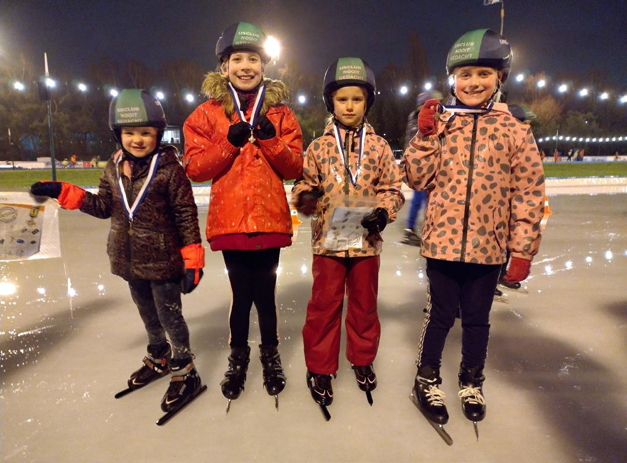 met 1,5 seconde verschil de 1500 meter te winnen. Ook voor Daan is het de eerste keer dat hij 'Algemeen Clubkampioen' geworden is. Ook werd in diverse leeftijdscategorieën gestreden, waarbij in iedere categorie (pupillen, junioren, senioren en masters) wel één of meerdere deelnemers te vinden was met spannende ritten. Ondanks de matige omstandigheden werden er toch maar liefst 27 persoonlijke records verbroken. Ook de jeugdschaatsers en Gschaatsers deden mee aan het kampioenschap. Voor de allerjongsten stond 2x een 100 meter op het programma. De wat oudere jeugdschaatsers reden een 100 en 300 meter en de G-schaatsers zelfs een 100 en 500 meter. Onder luide aanmoediging van de vele ouders langs de kant wisten ook zij er een hele leuke strijd van te maken. Hopelijk smaakt dit naar meer komen zij de komende maanden opnieuw aan de start bij de wedstrijden, die speciaal voor hen georganiseerd worden.