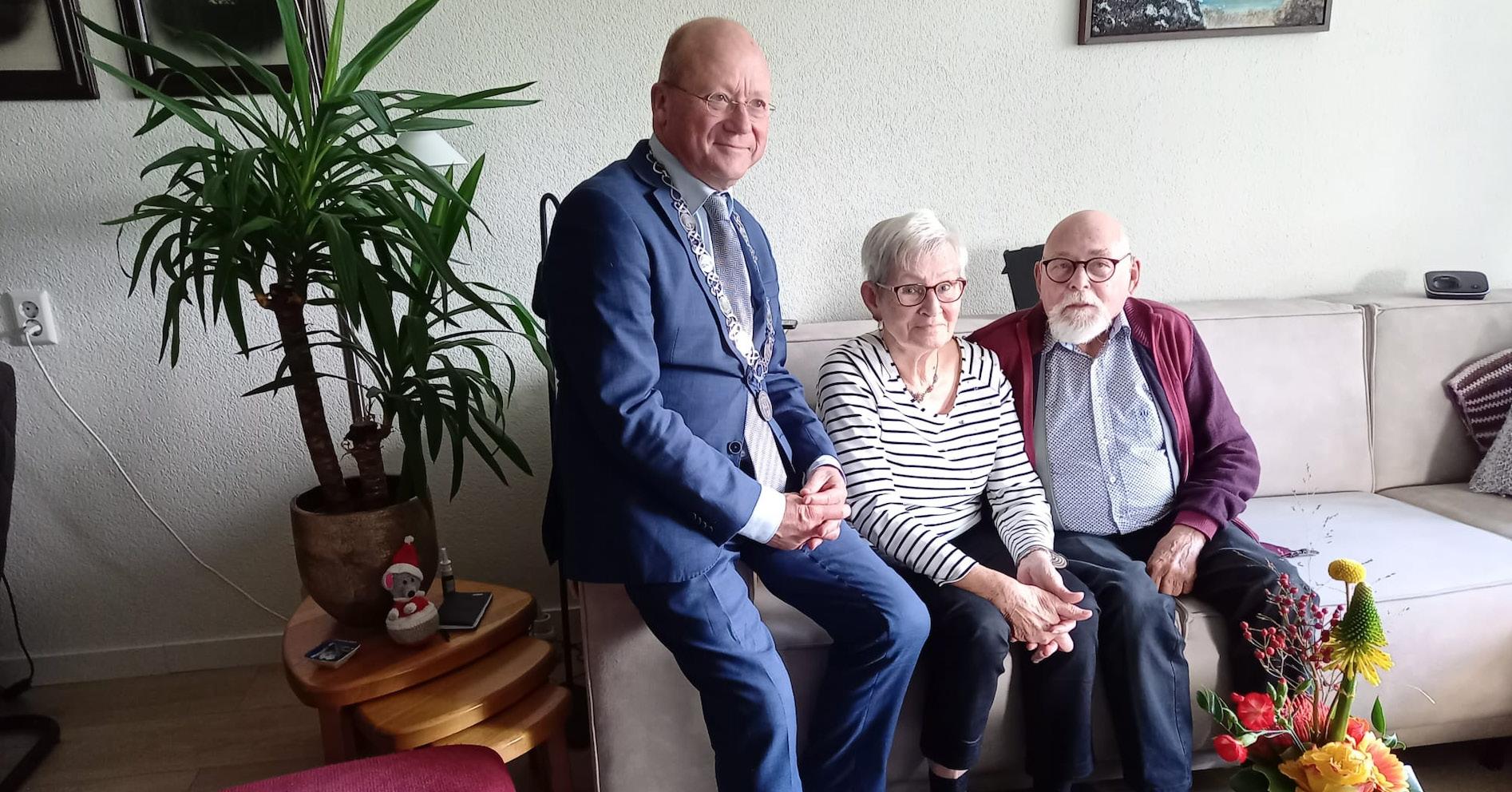 toen Ger na haar werk langs het huis van Jaap fietste. Op een dag sprong hij bij haar achterop. Hij vond haar “een leuk smoeltje” hebben en zij vond het “stoer” dat hij alles durfde. Vier jaar later trouwden ze en gingen wonen in een woonark in Vinkeveen. Jaap werkte als lasser en later als vrachtwagenchauffeur; Ger heeft haar hele leven in de confectie gezeten. Hun leven werd verrijkt met drie kinderen: Jeanet, Gerie en Henk. En twee kleinkinderen. Na nog een aantal jaren in Botshol, verhuisde het gezin naar Mijdrecht en daar wonen ze nu nog. Mooie en verdrietige tijden zijn er geweest en daarin hebben ze altijd steun gevonden in hun geloof. De zestig jaar zijn voorbij gevlogen en ze zijn nog altijd blij met elkaar. Namens de gemeente kwam burgemeester Maarten Divendal hen dinsdag feliciteren met hun 60-jarig huwelijk en zaterdag was er een lunch met familie en vrienden.