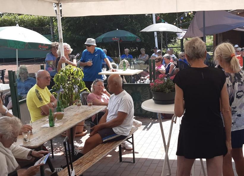 De koffie of thee met petit four smaakte prima. Na de bekende en onbekende deelnemers toegesproken te hebben, kon iedereen de baan op voor een leuke tennispartij, waarbij afgesproken was dat niemand al te fanatiek te keer zou gaan!!!