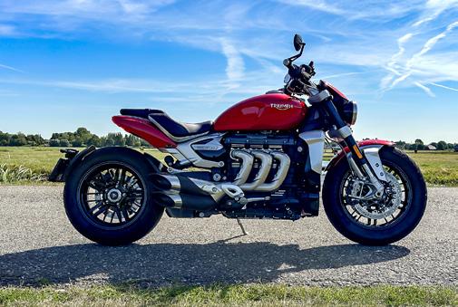 De motor start en klinkt precies als een stan daard Rocket, met het verschil dat er wat meer mechanisch geluid is. Dat is de compressor die stationair meedraait. De Rocket is heerlijk laag en de zit heerlijk. Het brede stuur en de zit geven een vertrouwd gevoel. Zodra de fiets op temperatuur is, probeer ik langzaam het gas te openen, maar het gaat zo hard dat dit bijna niet te volgen is. Het geluid is magistraal – wat een sensatie!!!