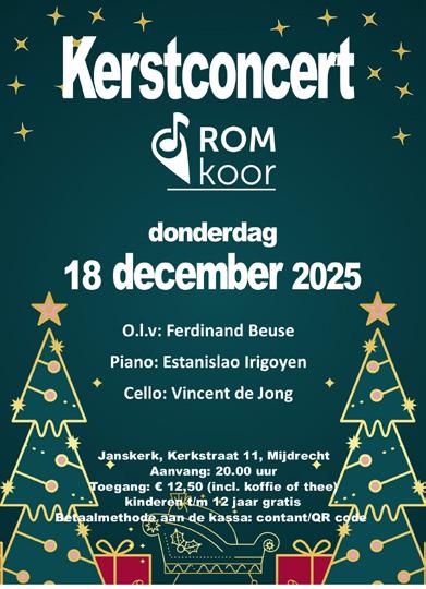 Open Huis De Rank in Mijdrecht vormt zaterdag 13 december het decor voor een bijzonder en hartverwarmend Kerstconcert voor Iedereen. Bewoners uit de hele regio zijn welkom om samen de kerstperiode muzikaal in te luiden. De toegang is gratis. Vanaf 19.40 uur ontvangen zangeres Mik Kruijswijk en pianist Cajan het publiek met sfeervolle kerstliedjes. Het programma biedt verder een rijke afwisseling van bekende én verrassende kerstliederen, uitgevoerd door Christelijk Mannenkoor Immanuël, Pete Bog’s Bigband met zangeres Heidy Crooymans, het ROM-koor, Greetje de Haan en Stijn Nijhoff. Pianist Irina Parfenova en fluitiste Suzanne Arends zorgen voor prachtige klassieke intermezzo’s. De avond wordt gepresenteerd door Adriana Kegley. Zij weet als geen ander de kerstsfeer te raken, en samen met pianist Annemieke van Beek nodigt zij het publiek uit om mee te zingen tijdens de gezamenlijke samenzang. Na afloop is er voor alle bezoekers een heerlijk kopje chocolademelk of een glas glühwein – een mooie afsluiting van een muzikale kerstavond. Het Kerstconcert voor Iedereen is een initiatief van Cultuurpunt Ronde Venen. Meer info: www.cultuurpuntrondevenen.nl.