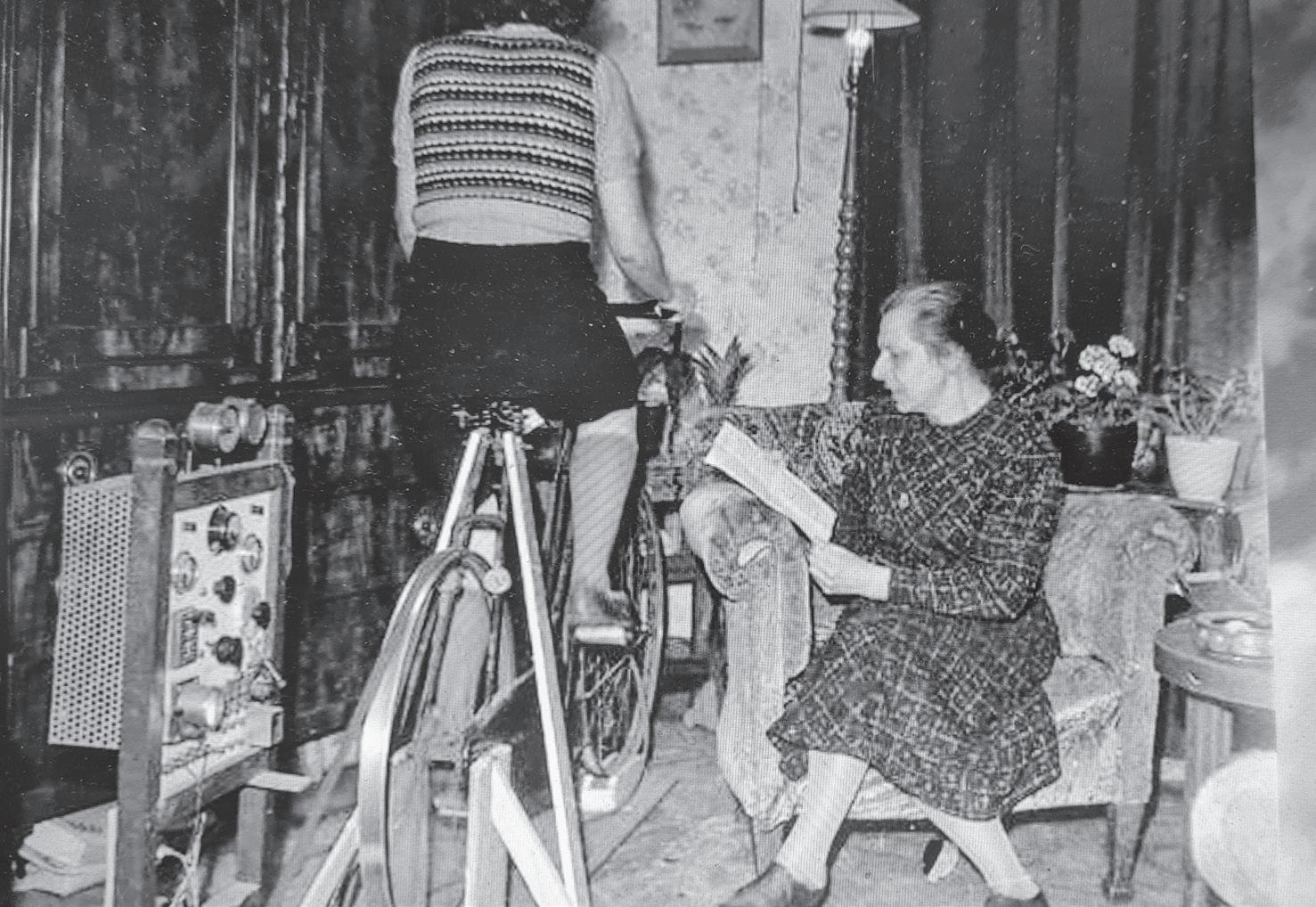 brandstof bleef noodzakelijk. Dus werden de kookgelegenheden kleiner. Een ‘duveltje’ als kookkachel en verwarming en een tafelkacheltje om kleine porties te maken. De elektra werd afgesloten. In de winter, als het vroeg donker werd, was dat toch een probleem. Er werd snel een oplossing gevonden. Voor de verplaatsing door het huis kwamen oliepitjes, zogenaamde drijvertjes in gebruik. Bij ons kwam een accu de energie leveren. De accu werd opgeladen door een autodynamo met fietsaandrijving. Om de beurt een kwartier fietsen en om de beurt een kwartier lezen.’’