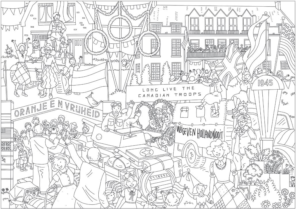 anaf maandag 28 april kun je bij het gemeentehuis in Mijdrecht en het Regionaal Archief RHCVV deze bevrijdingskleurplaat ophalen. Lever de kleurplaat uiterlijk 30 mei in bij het RHCVV en maak kans op een prijs. Voor meer informatie, kijk op de website van het RHCVV (www. rhcvechtenvenen.nl).
