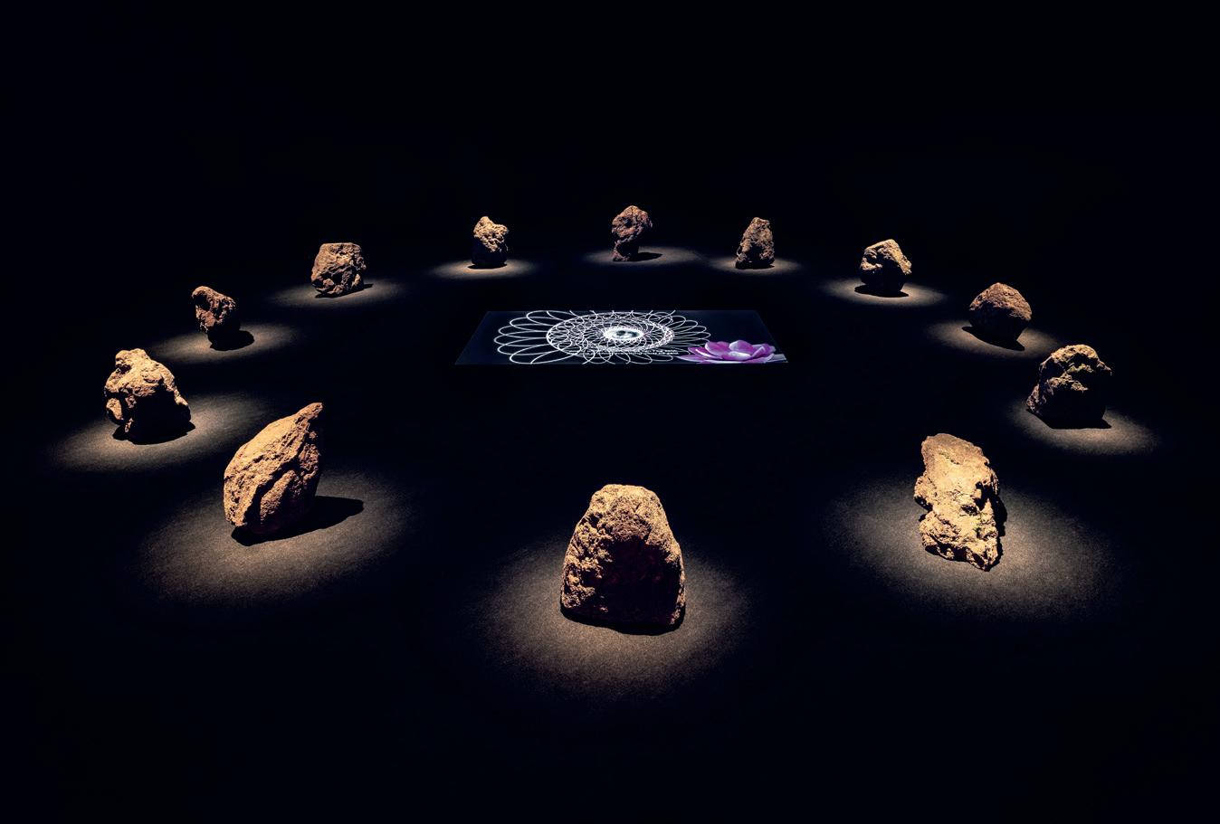artist brings together stories from the guardians of these sites, observations from the local population, and other findings from astronomers, archaeologists, and theologians in order to uncover the secrets of the stone circles: her various sources see them as everything from petrified brides, burial sites, ancient observatories and ceremonial sites to spirit places and even sources of spiritual energy. At any rate, these stone circles have become the centre of Rezaire’s scientific, mystical, and cosmological research.