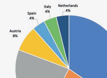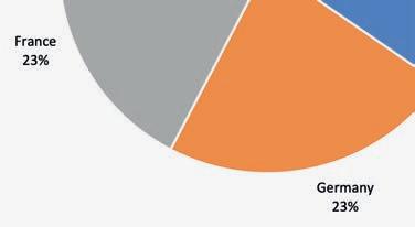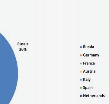 e NKVM’s Ausstellung II,Turnus 1910/11 included 132 artworks by 29 artists, most of whom were living in Paris or Munich at the time.4¹8 According to the catalogue, the show included painters from seven countries: Austria (including Czech artists), France, Germany, Italy, the Netherlands, the Russian Empire (including Ukrainian artists), and Spain.4¹9 is reflects the internationality already represented by the authors of the numerous prefaces in the catalogue. is internationality is highlighted in the catalogue by listing the city of residence a er each artist’s name. Statistically, the majority of the artists are Russian, making up 34 percent of the participants (see fig. 42). German and French artists comprise 23 percent each– or about a quarter– of the exhibition. All other nationalities participate with just one artist, equivalent to 4 percent each. is means that Kandinsky and his compatriots form the largest group of exhibitors at annhauser’s gallery.
