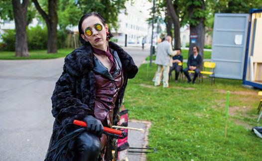 Die von Barbis Ruder geschaffene Kunstfigur INFLUENCA nimmt Bezug auf die Generation Z und deren selbstverständlichen Zugang zu Social Media in ihrer Lebensgestaltung. Dabei verhält sich INFLUENCA, deren Name ein Hybrid aus SocialMedia-Influencerinnen und der Influenza, also dem Grippevirus ist, selbst wie ein Virus, das eine soziale Krankheit auslöst. Völlig unkontrolliert mutiert sie zu immer neuen Formen und performativen Zuständen. Dabei dreht die Künstlerin die Rolle zwischen Institutionen und Individuen um, indem sie die geforderten Rollenmuster auf schrille Art und durch Selbstüberforderung entlarvt.