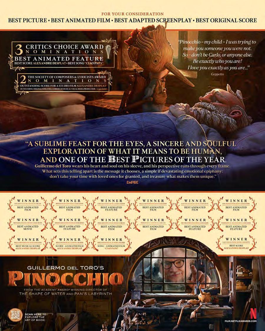 First Take 4 PAUL MESCAL: Dad and loving it: the Irish “co-star” of indie hit Aftersun 8 QUICK SHOTS: Walking the talk in She Said and dressing for duress in Women Talking 10 THE BIG REVEAL: Top Gun: Maverick director Joseph Kosinski’s personal stories behind the film. 14 INTERNATIONAL: How Ireland’s The Quiet Girl became a success. 18 DOCUMENTARY: Put your arms around the world at Oscar time. 22 FRESH FACE: All Quiet on the Western Front star Felix Kammerer. Cover Story 24 TRIO OF LIFE: Alfonso Cuarón, Alejandro G. Iñárittu and Guillermo del Toro get the old gang back together. Dialogue 36 BARRY KEOGHAN 38 CHINONYE CHUKWU 40 GRETA GERWIG 42 PARK CHAN-WOOK 46 JESSICA CHASTAIN 48 EDDIE REDMAYNE 50 JENNY SLATE 54 RYAN COOGLER 56 KATE HUDSON 58 BITATÉ URU EU WAU WAU 62 CAREY MULLIGAN 64 SARAH POLLEY 66 PAUL DANO Craft Services 70 CUTTING TO THE CHASE: Three editors on getting historical for The Woman King, All Quiet on the Western Front and Emancipation The Partnership 76 JAMES GRAY & JEREMY STRONG: New York state of mind: the making of Armageddon Time ON THE COVER: Alfonso Cuarón, Alejandro G. Iñárritu and Guillermo del Toro photographed exclusively for Deadline by Josh Telles.