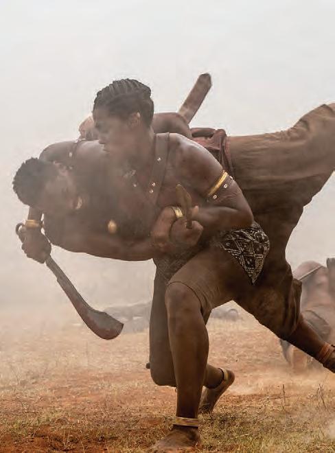 One of the scenes that really sets the tone is at the beginning of the film when the Agojie warriors rise out of the tall grass. Shropshire says that scene was not originally scripted that way. “When we started to start to go in and really look at characters in the editing room, we decided the best way to bring the audience in was through a sense of mystery and discovery.” Before any of the characters were introduced, the women rise from the grass and attack, which establishes a tone for the warriors that allows the audience to start a journey of discovery.