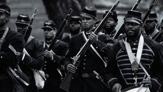 From left: Peter joins the Union army; Jim Fassel (Ben Foster) hunts for the escaped slaves.