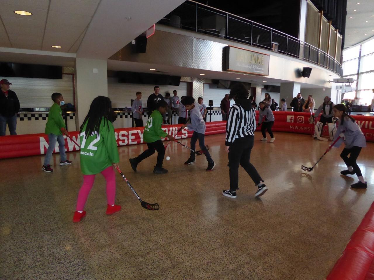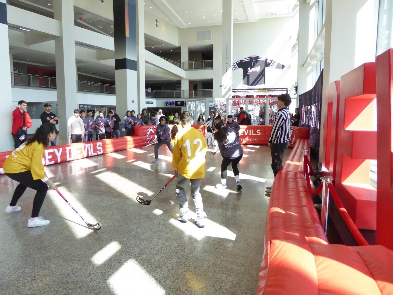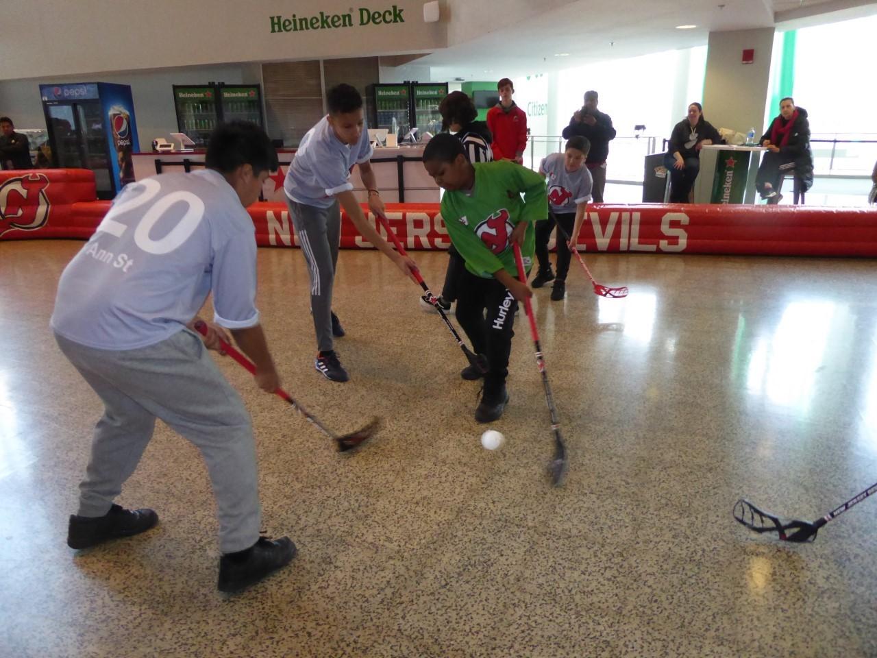 One of those youth hockey events took place last weekend as we volunteered to help with a middle school ball hockey tournament at Prudential Center for 6 local teams, designed to teach the chil-