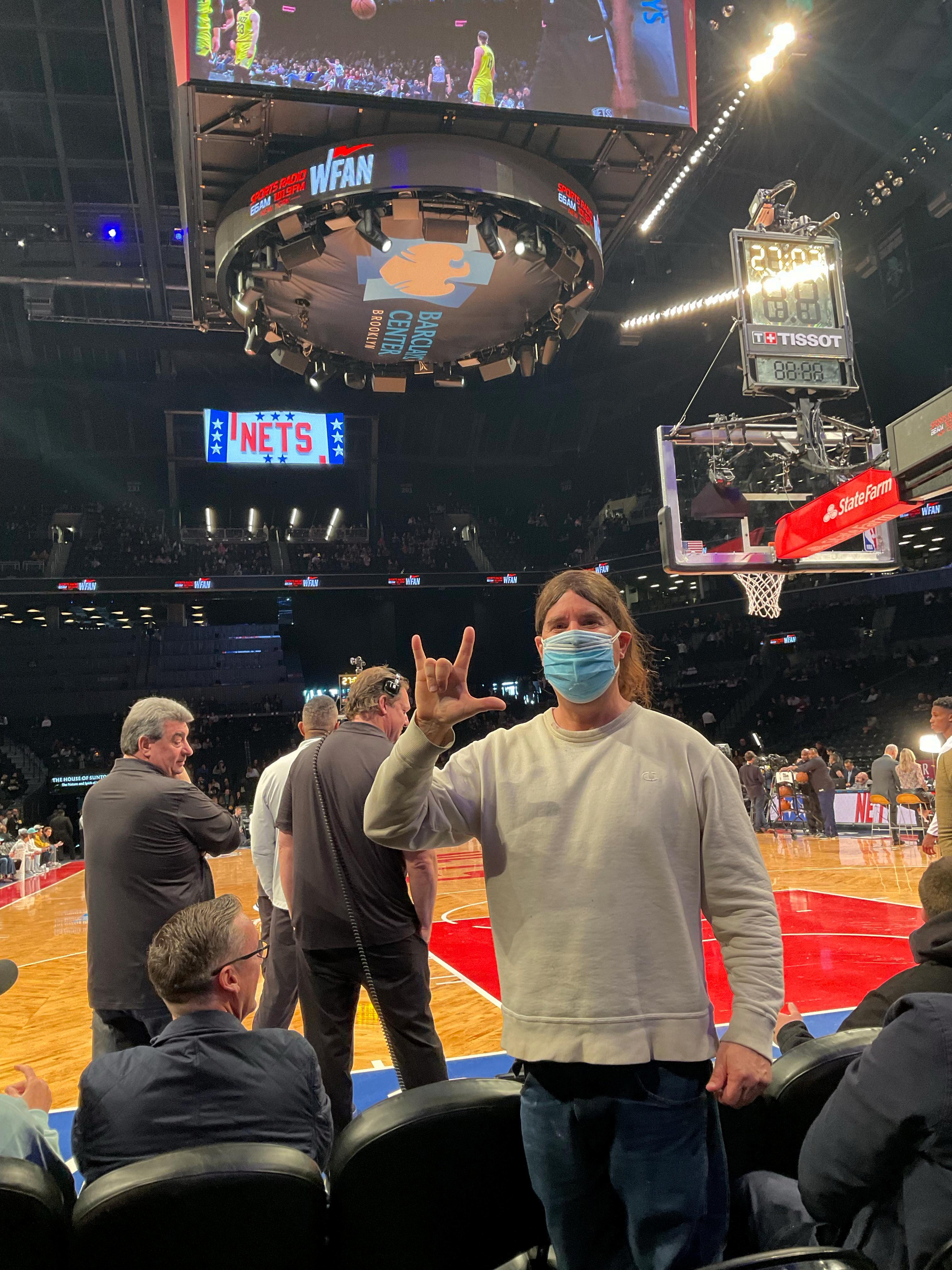 Gary Noll, Deaf Brooklyn Nets fan and advocate, attended Brooklyn Nets NBA home game at Barclays Center, Brooklyn New York. Still advocate live captions on scoreboards or ribbon boards, also mobile captioning QR code advertisement at Barclays Center. Barclays Center is a great sports venue.