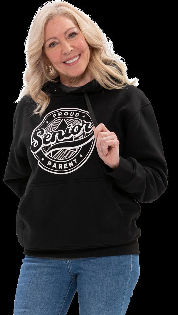 Show off your student’s senior status with this drawstring hoodie. Made of 80% poly / 20% cotton. Sizes S–3X.