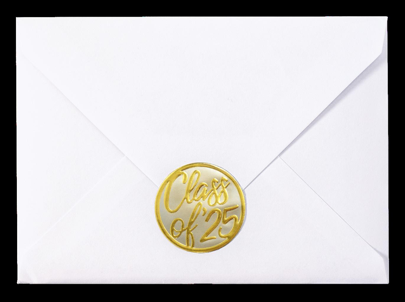 Complete your announcement with Class of 2025 embossed seals. Gold and silver design. 25 per pack.