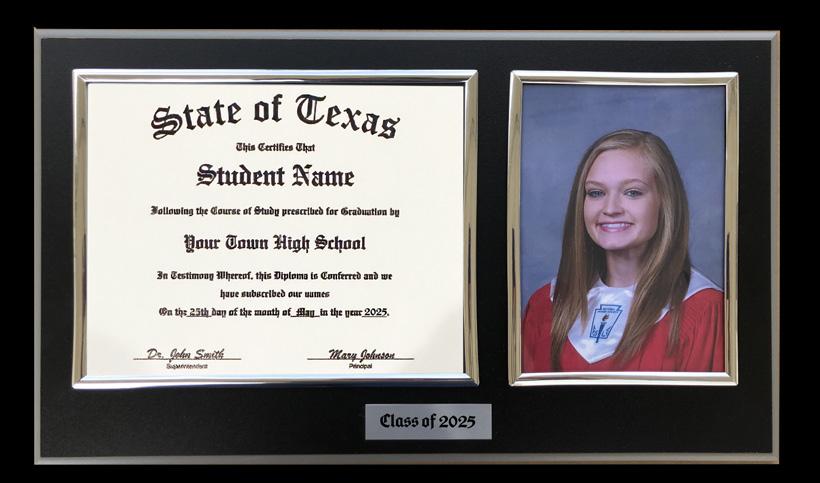 Official Class of 2025 announcements may feature your school’s official building or school mascot etching.