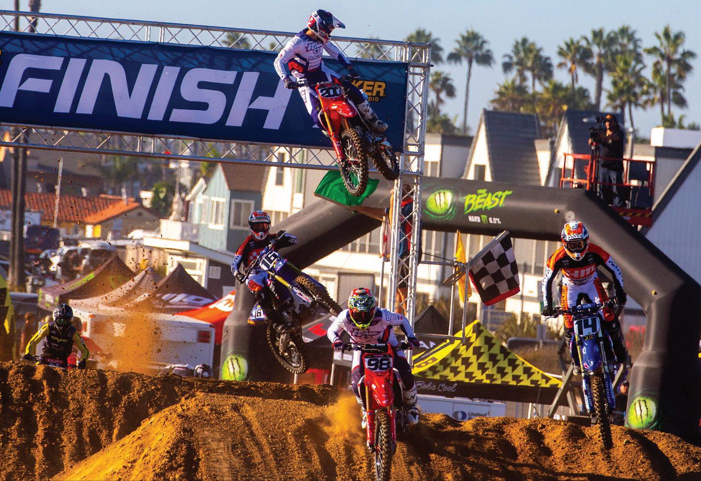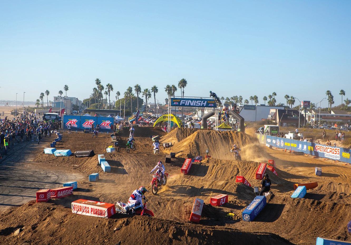 Even though it meant a 2 month delay before Round 2 in Boise in December — not to mention it was outdoors instead of an arena — AX Promotions Managing Director Shawn Smith decided to kick off the North American Arenacross Championship on the beach dining the day. ”We kicked things off in Huntington Beach, California — and it was a wild start to the season. New year, new venues, same adrenaline!”