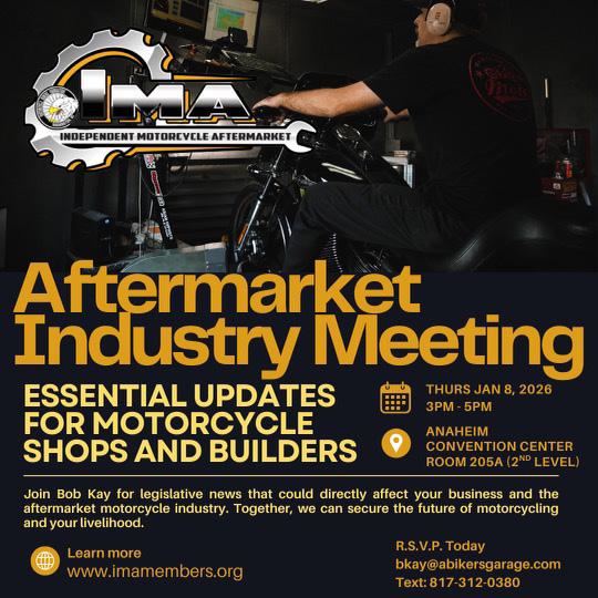 “It is about those of us in the motorcycle aftermarket having the backs of our long-time and new customers while working with the Motorcycle Riders Foundation to ensure the future of motorcycling,” he adds. “The independent aftermarket industry is essential to the future of motorcycling,” he notes. “Every Independent Dealer should join IMA today.”