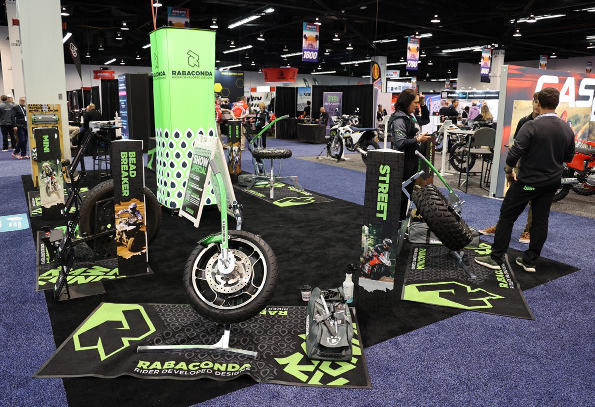 We talked with folks from EVS, Leatt, Phoenix Handlebars and ProTaper, (yeah, that’s awkward), and we chatted up people from Alpinestars, Asterisk, FMF, Motion Pro, Tuff Jug, O2 Rush Air Filters, Monster Energy and even Rabaconda about their awesome Tire Changers, in the hopes of easily giving our bikes new knobs in the pits without pinching tubes every time.
