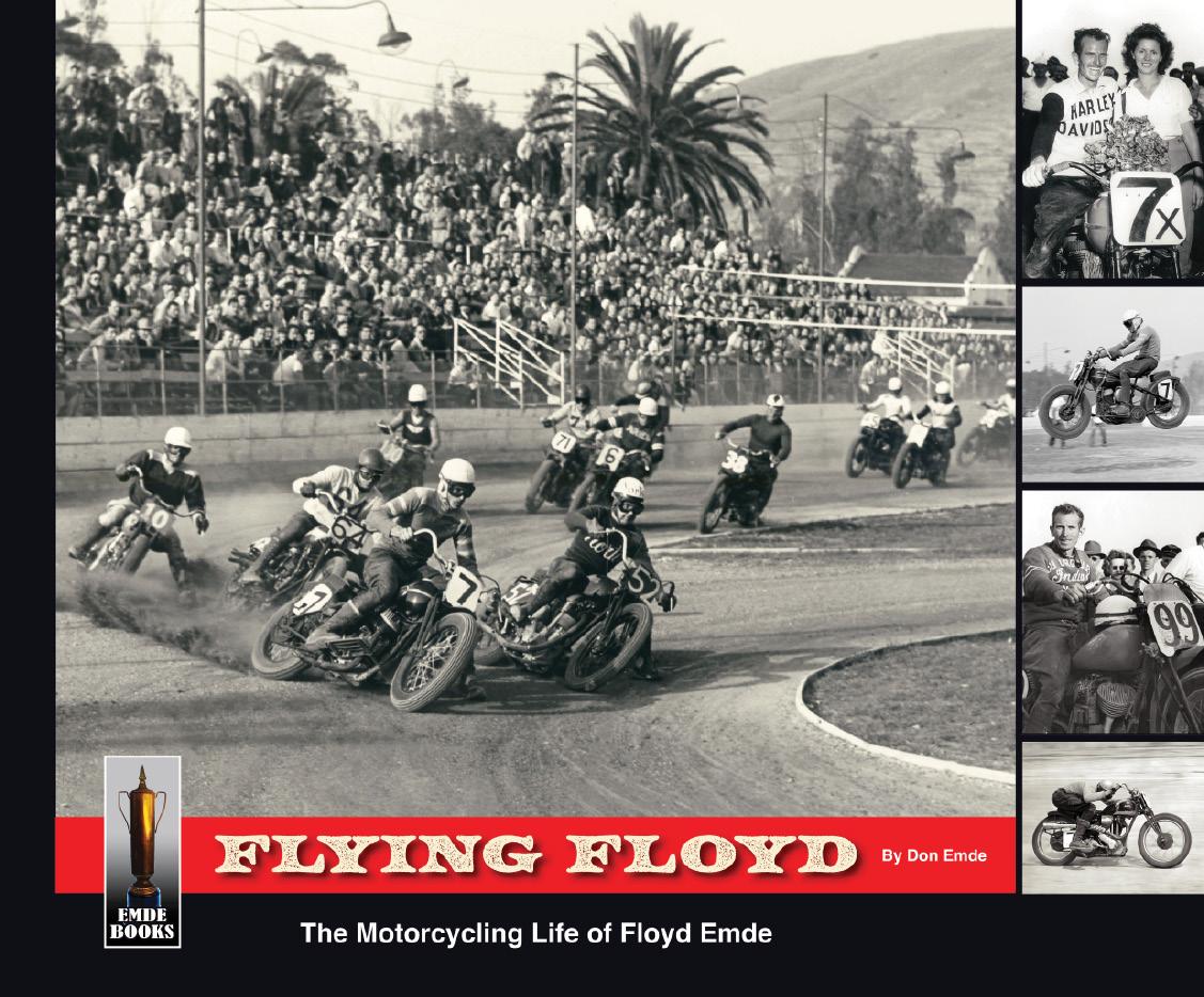 Flying Floyd. The Motorcycling Life of Floyd Emde, written and published by Don Emde, tells the story of his father, Floyd Emde’s legendary years in motorcycle racing, multiple dealerships and building race bikes for his three sons and a daughter. Those familiar with the “Harley and Indian Wars” of the 1940s will enjoy the week-to-week coverage back in Floyd’s racing years including his personal written notes after every race, plus his wife Florence’s handwritten results in many souvenir programs.