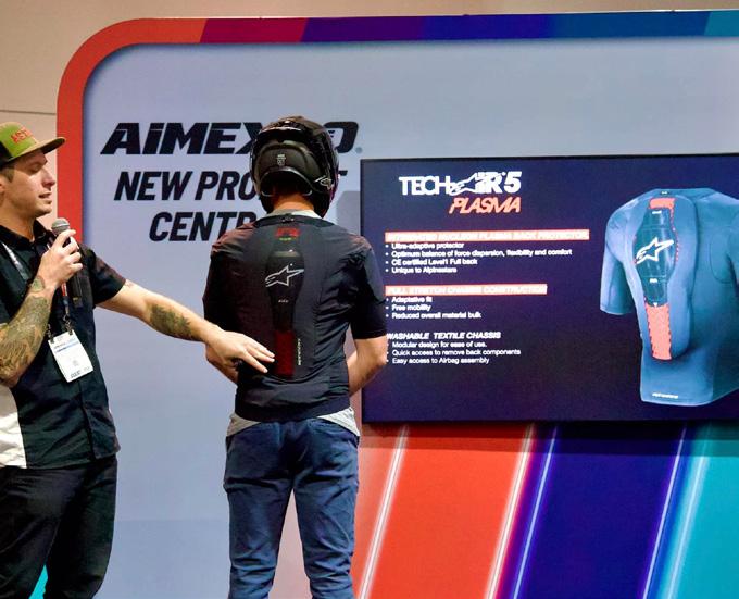 With a new look and expanded layout for the AIMExpo Starting Line – a new feature area at the front of the show — New product presentations took center stage, literally and figuratively front and center in Las Vegas. Early bird dealers and nearly 200 media types were treated to a guided tour on the show floor. Meeting by the REV’IT! ADV Checkpoint at the Starting Line near the main entrance, the tour took the media scrum to the OEM displays, including Suzuki, Moto Morini, MV Agusta, Piaggio Group, KTM group, Zero Motorcycles, Royal Enfield and Segway.
