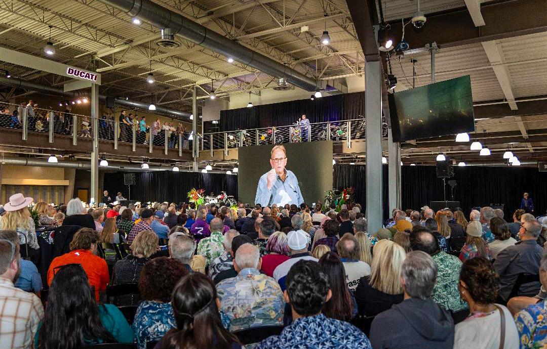Note this was not at a black tie affair — it was a celebration of life — Hawaiian shirts were encouraged! On Sunday (of course) January 12, family, friends, fellow legends and heroes gathered at Malcolm Smith Motorsports to celebrate the life of the Motorcyclist Of The Century. Tall tales, good food, bad Hawaiian shirts and a showing of On Any Sunday, were the order of the day.