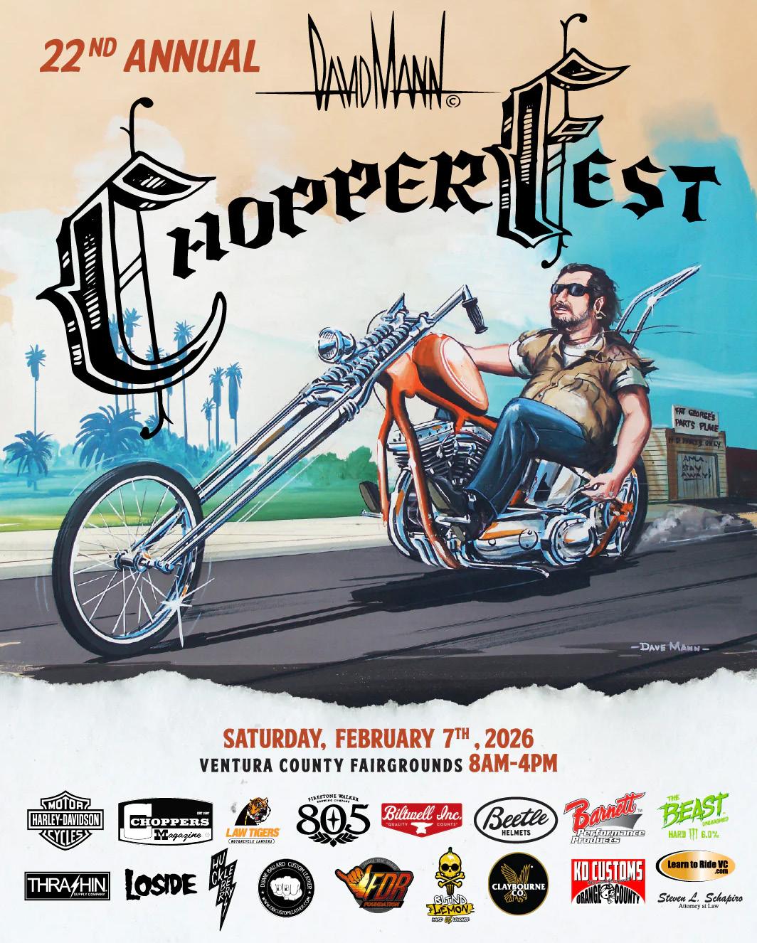 Speaking of art, even the bike show trophies were oneof-a-kind pieces of art… did we mention art? There was plenty of body art at the new David Mann Chopper Fest Tattoo Convention. Ten tattoo shops brought their best artist to sunny Ventura. Continued from page 55