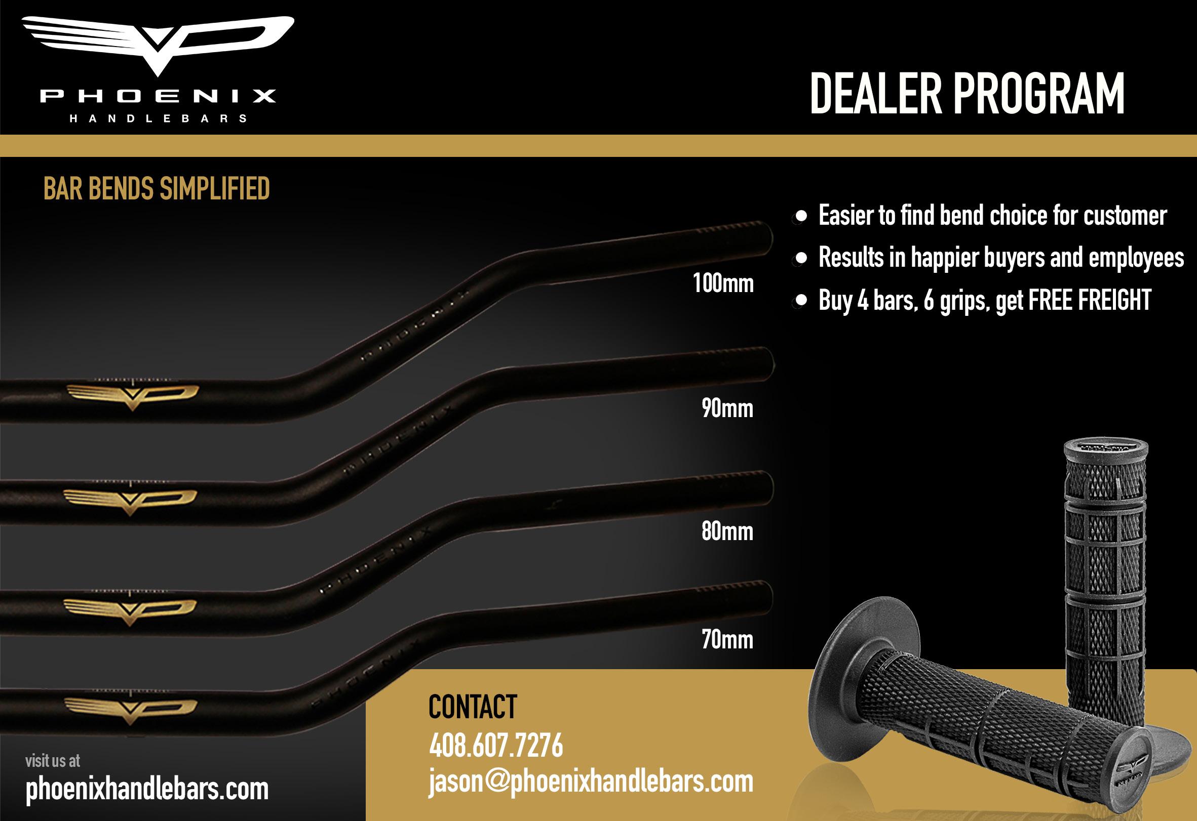 Phoenix gets old school moto… right down to the safety wire slots on their half-waffle grips. But there is more to the brand than selling handlebars, says founder Jason Gearld. “We started this brand to sell bars. But it was also to connect with people. We like to think we are accomplishing that mission.”