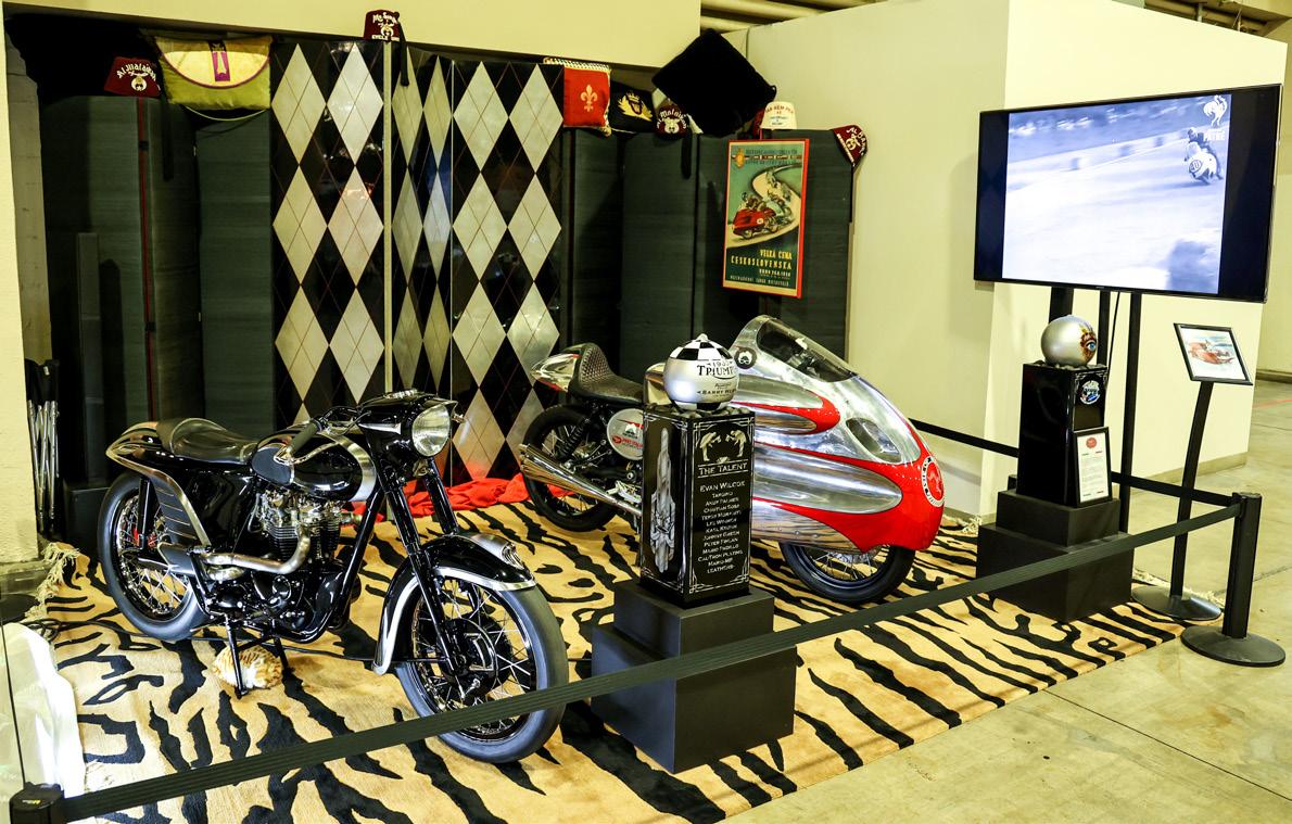 Several unique motorcycles could be found in vendor booths around the show. A couple examples were Chad Anderson’s 1978 H-D Shovelhead in the Ace Of Shades Paint booth and a Triumph powered Rickman Metisse tucked in on the side of Jimmy Shine’s booth.