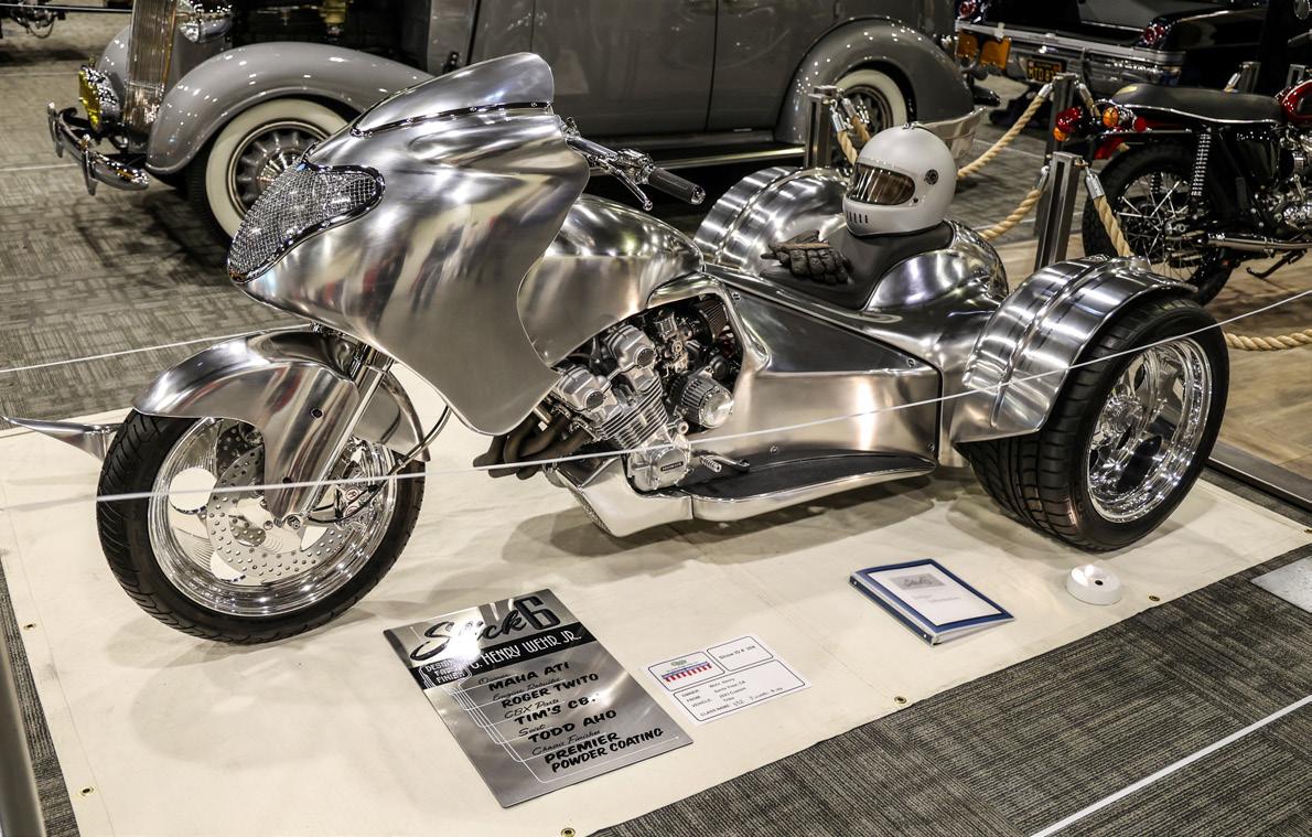 While a mecca for rods and customs, motorcycles have long been a key component of the Roadster Show. You may remember former Custom Chrome exec-turned Dealer Dan Stern entered his trike and won big a couple years ago (and we featured photos of the bike in the issue when Stern spoke to Mark Rodgers issuu.com/dealernews/docs/issue_8_ august_6bffaad43f06cc/34).