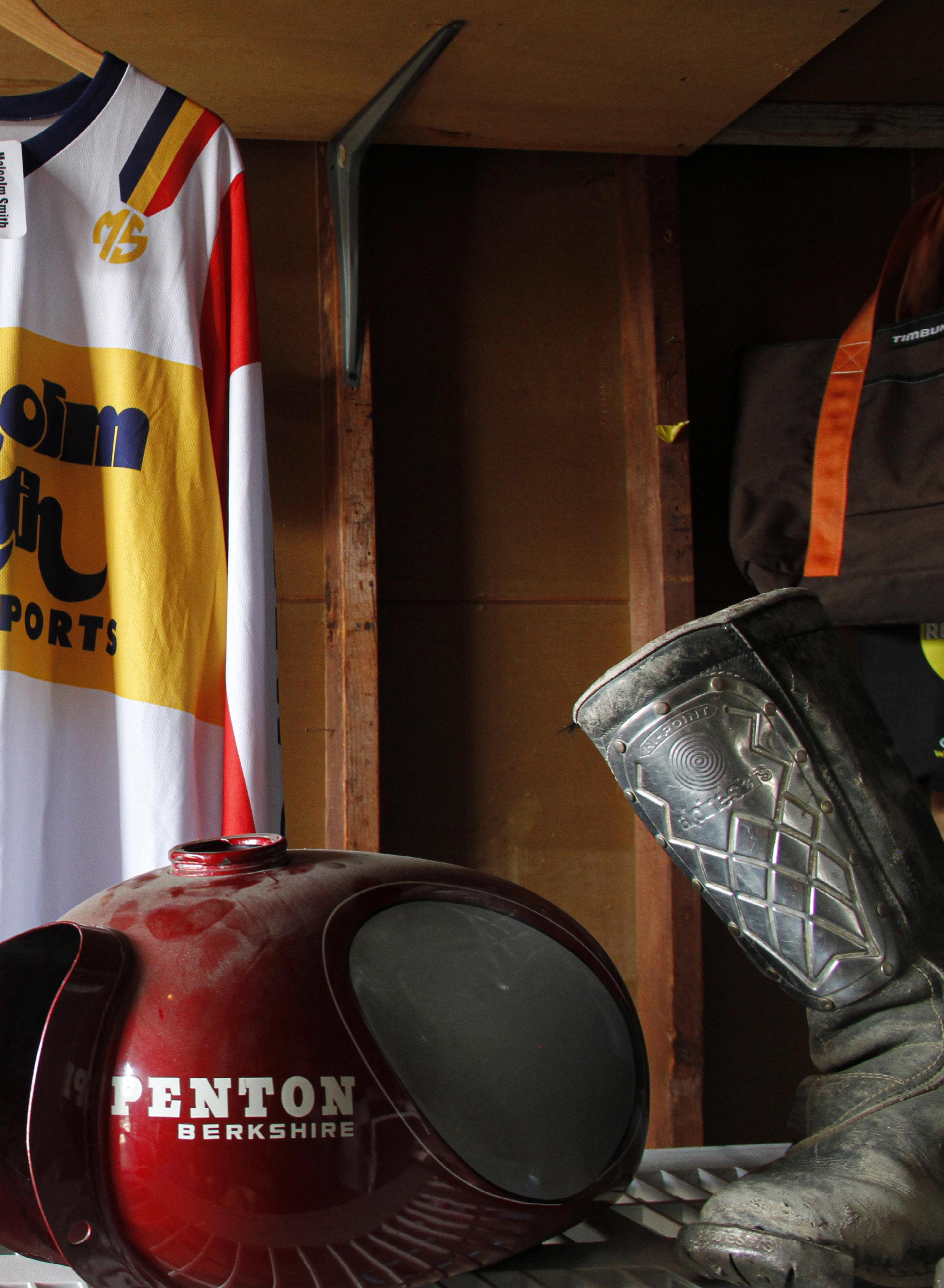 Now 50 years later, Bell has released a Steve McQueen redux and Malcolm Smith Motorsports is once again selling Gold Medal Jerseys. I still have my Penton and my original Bell and the boots, but that jersey was worn out long, long ago. Time to relive my childhood On Any Sunday fantasy once again… Speaking of time, check out the Preston Petty commemorative clock… in order to save my alloy fenders, I swapped them out with Preston Petty plastics, sealed my tank while I was at it (yep still have that, too as a spare signed by John Penton himself). I added a Mikuni carb in place of the stock Bing vergasser, then replaced the throttle with a Gunnar Gasser “whirlpool” and safety wired on some new grips.