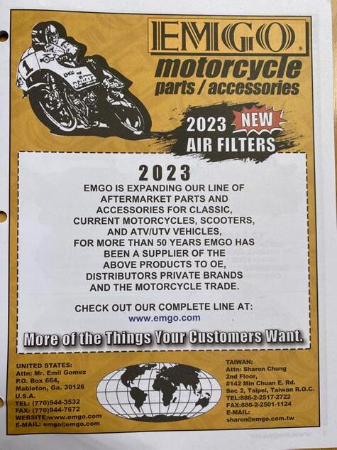 For more than 50 years EMGO has been a supplier to OEM, distributors, private label and the motorcycle trade at large. In an era of instant gratification and catalogs delivered via QR code on your smartphone, EMGO remains consistent in its belief that trade shows are for doing business the good old fashioned way! Paper catalogs, show special pricing and handshake deals… EMGO is about business as usual! However they know Gen Next is out there and they do have a website highlighting the latest happenings. “EMGO is expanding our line of aftermarket parts and accrues for classic and current motorcycles, scooters and ATV/UTV vehicles,” is what it said on the NVP materials.