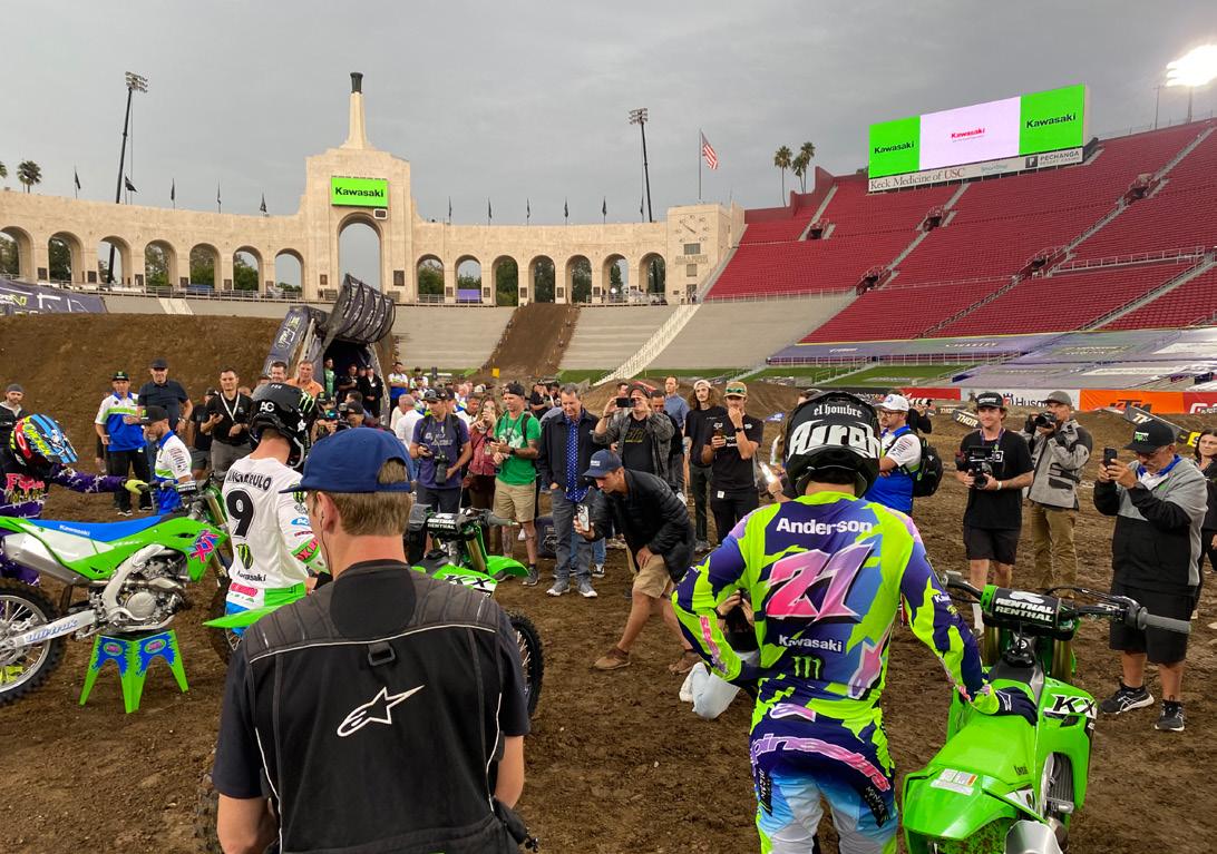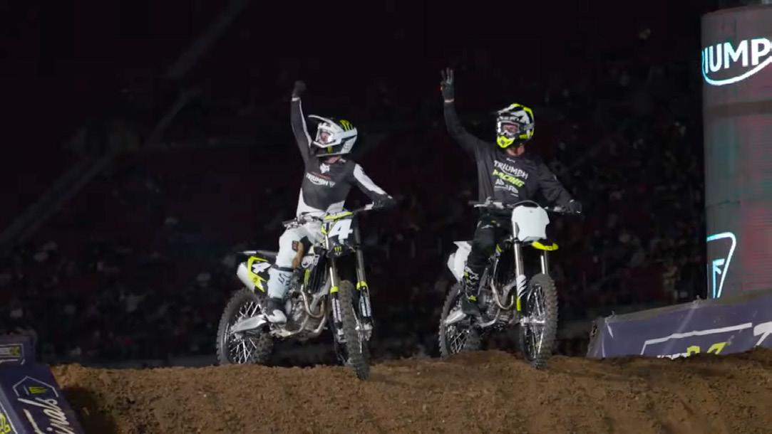 A pair of production-spec bikes rocketed down LA’s legendary Peristyle piloted by Jeff ‘Six Time’ Stanton — who won his last Championship at the Coliseum and is the current manager of Triumph’s Adventure Experience in the US — and the GOAT, Ricky Carmichael. “I’m so happy to finally show the fans what we’ve been working on for the past 4 years,” said Carmichael. “The bikes feels great, it looks great... and it’s fast! I’m really pleased with what we’ve delivered and I can’t wait until we can share the final details on November 28th.”