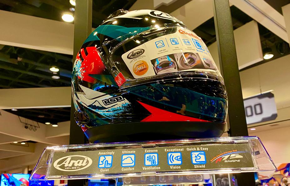 In addition to the aforementioned goodies from S&S, there was nearly an unlimited supply of parts to pick from. While it would be hard to top the trick bits Bondy had in hand (literally with the new cam follower), there were plenty of show stoppers from the addition of Arai into the LeMans stable to the latest Better Brakes from SBS. From EV to V-Twin every aspect of powersports was well represented with technological innovations and bold new graphics.