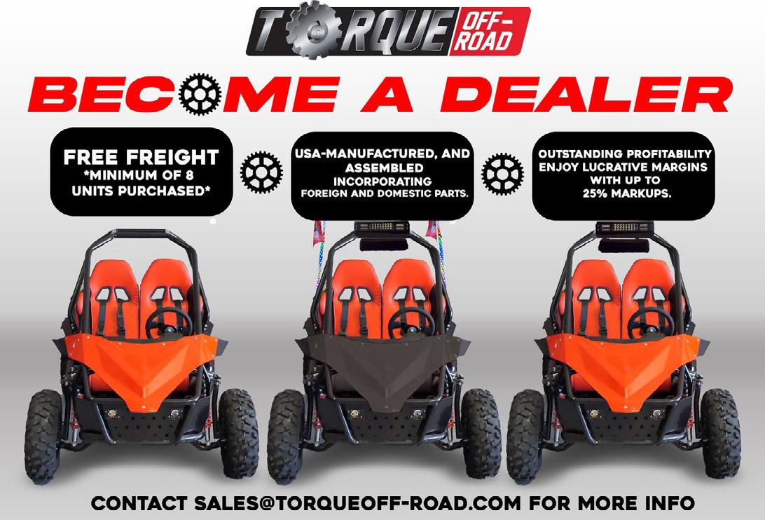 After solving some supply chain issues, Torque Off-Road is back on the road, literally; the Torque team is on the road delivering units to dealers in Connecticut and New Hampshire this week. With improved performance, generous dealer margins, freefreight and made-in-the-USA, there is little more to be said about the fast-moving fun machines.