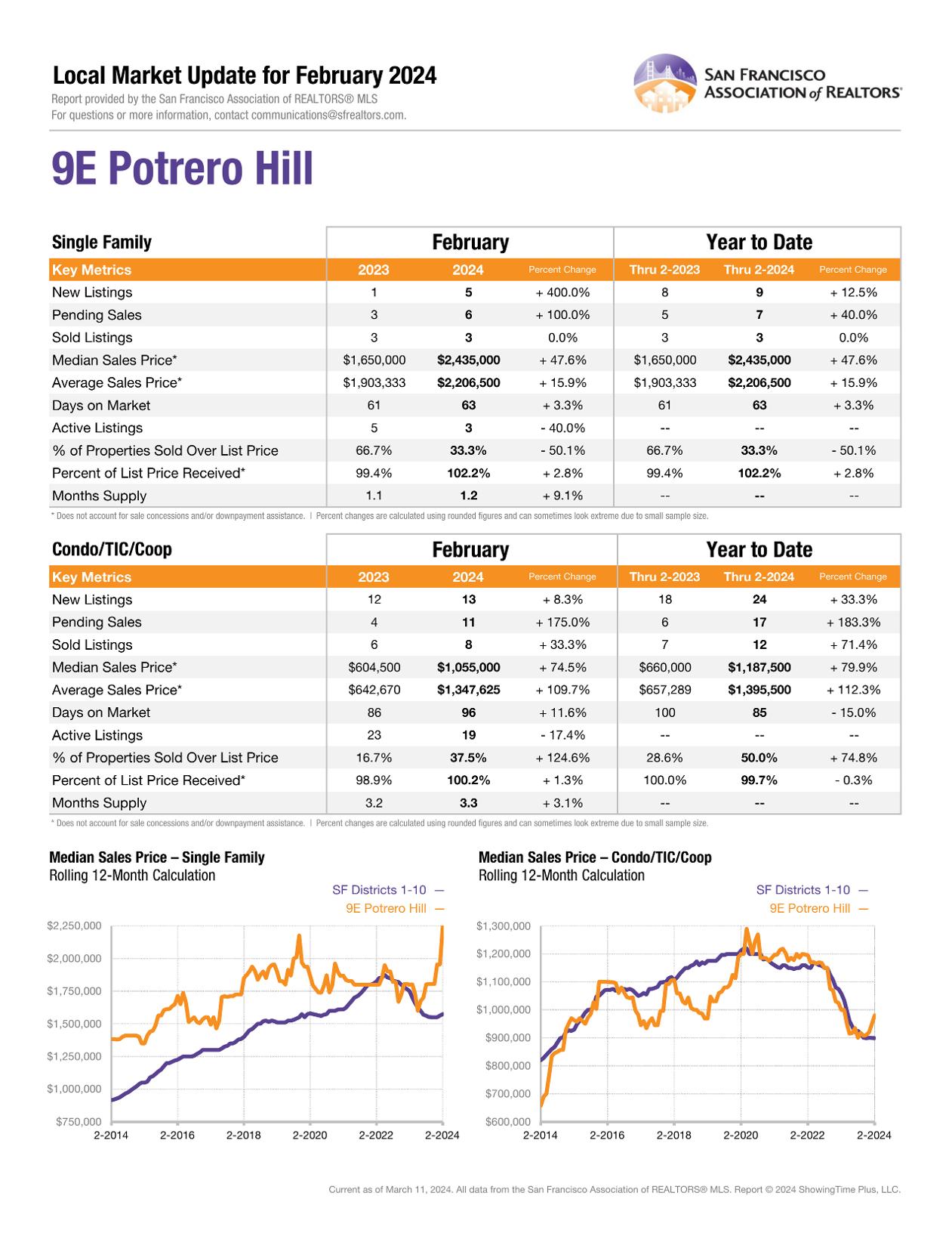 PortreroHillMarket Update February2024 Data provided by the San Francisco Association of Realtors All data from the San Francisco MLS Report © 2023 ShowingTime Badessa DRE: 01876759 Dean Badessa 415 474 5140 m Dean@DeanBadessa com