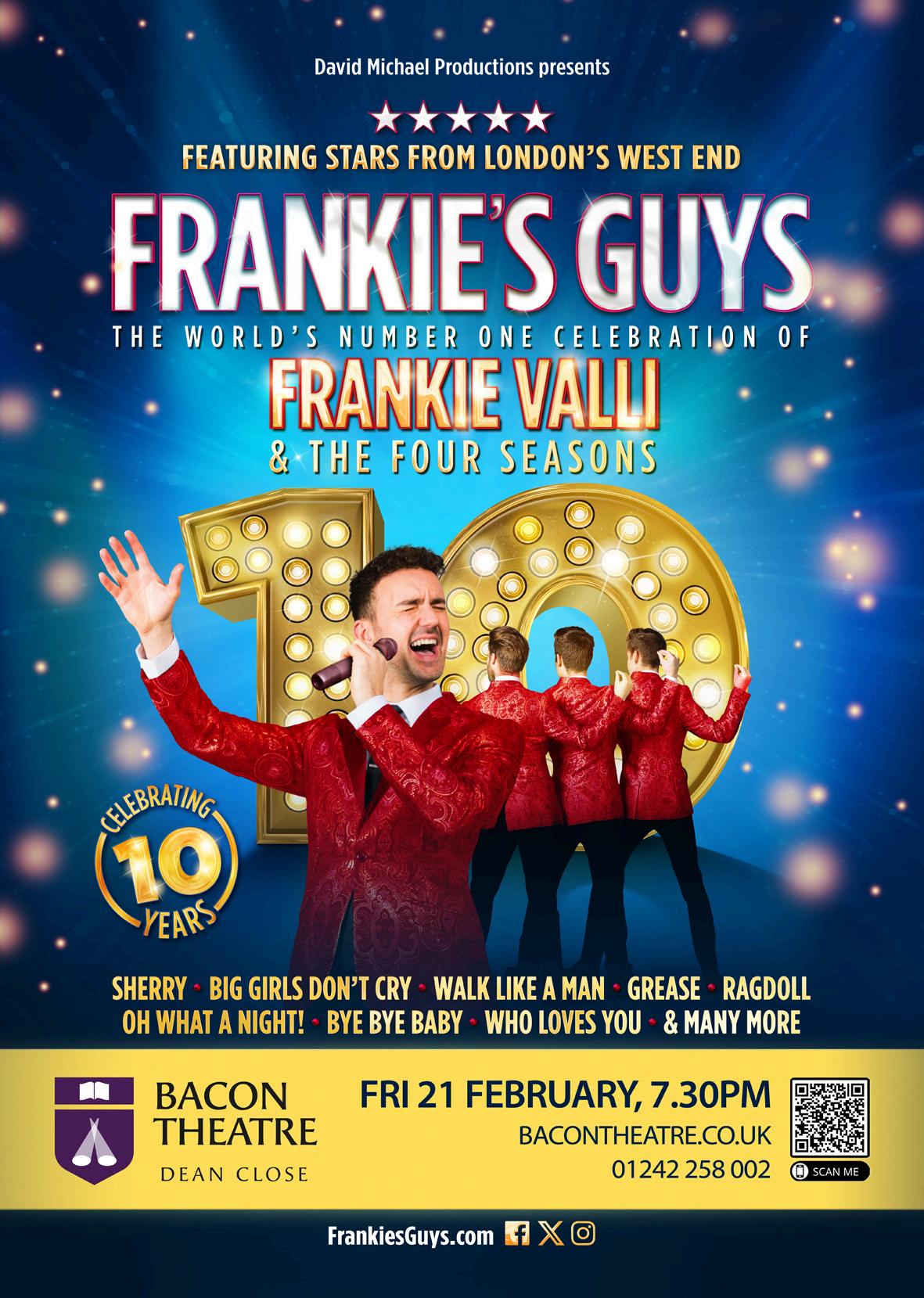Celebrating an epic 10 years of UK and global touring, the award-winning Frankie's Guys are renowned as the UK’s leading tribute to Frankie Valli & The Four Seasons.
