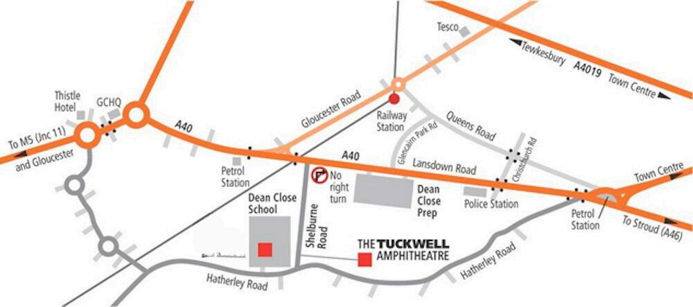 The Bacon Theatre can be accessed via the Hatherley Road entrance to Dean Close School